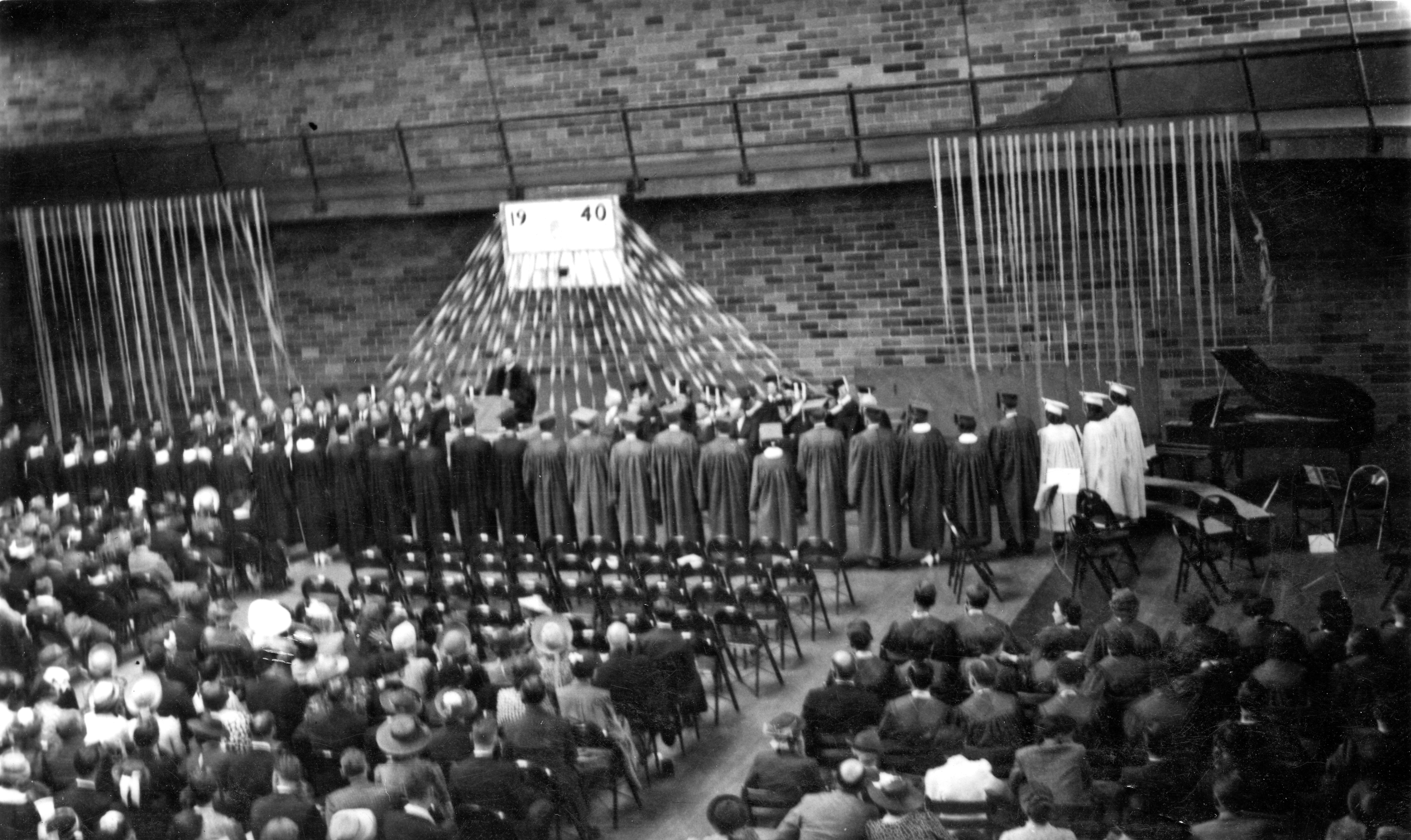 When Olivet purchased the college in 1940, the commencement exercises were held on the basketball court. The field house was the largest building on campus that could accomodate functions such as Messiah and other performances.